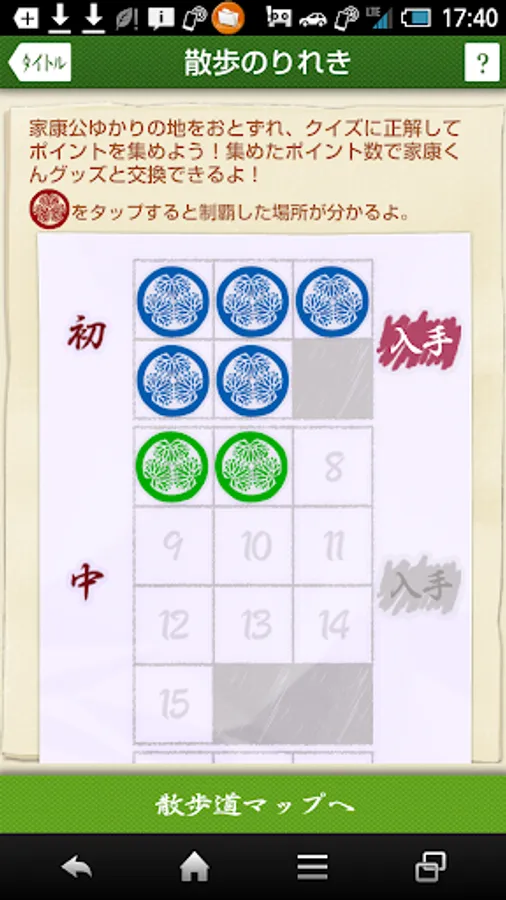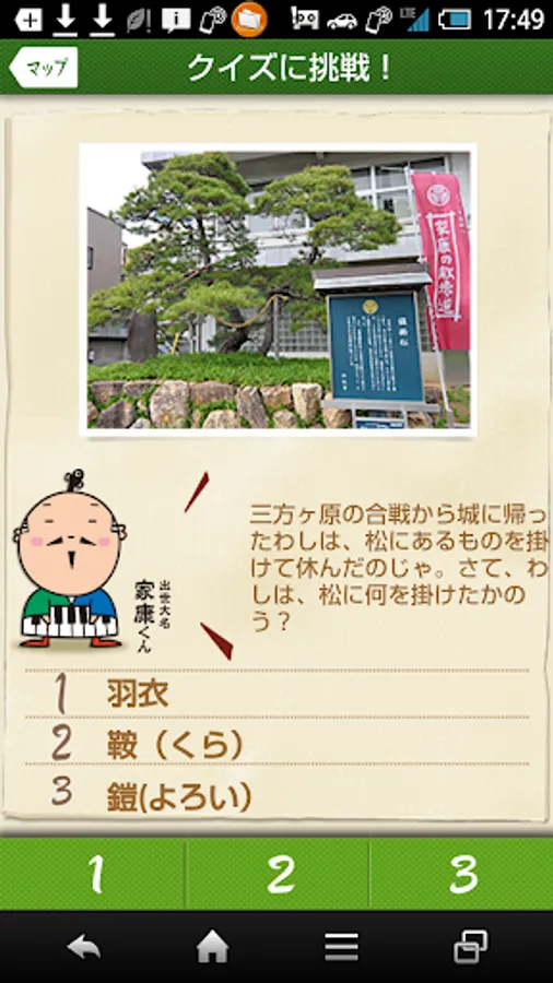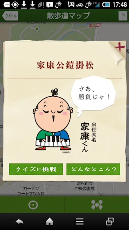 Using Android, Tour of the land of Tokugawa Ieyasu Yukari 30 locations Hamamatsu city, challenge quiz.