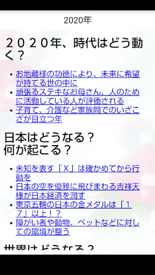 で も Yoshiko Shimo, a super psychic who is active in various media such as TV and magazines, is also familiar with "Horror" and predicts your fortune. What kind of year will 2020 be in the midst of catastrophic events? The fate of you and your loved ones ... Please check with this application.