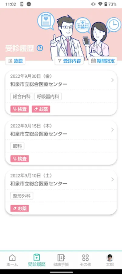 You can retroactively check medical treatment details (prescription details, test details). You can save what you want to tell the doctor in the memo field.