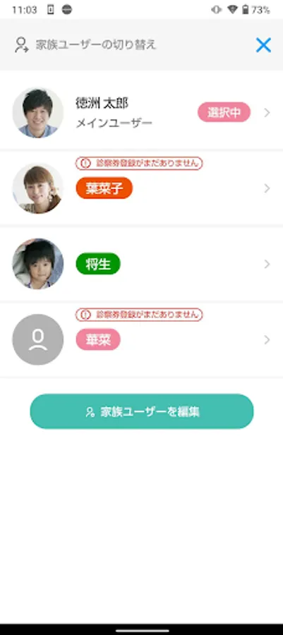 You can switch users between family members to share information. You can share medical examination status, test results, etc.