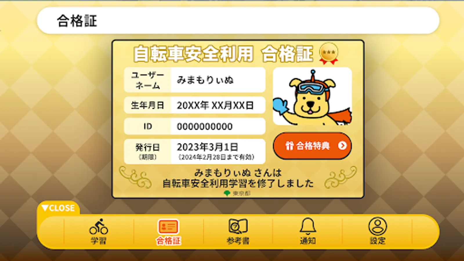 When you pass the test, the app will display a certificate.