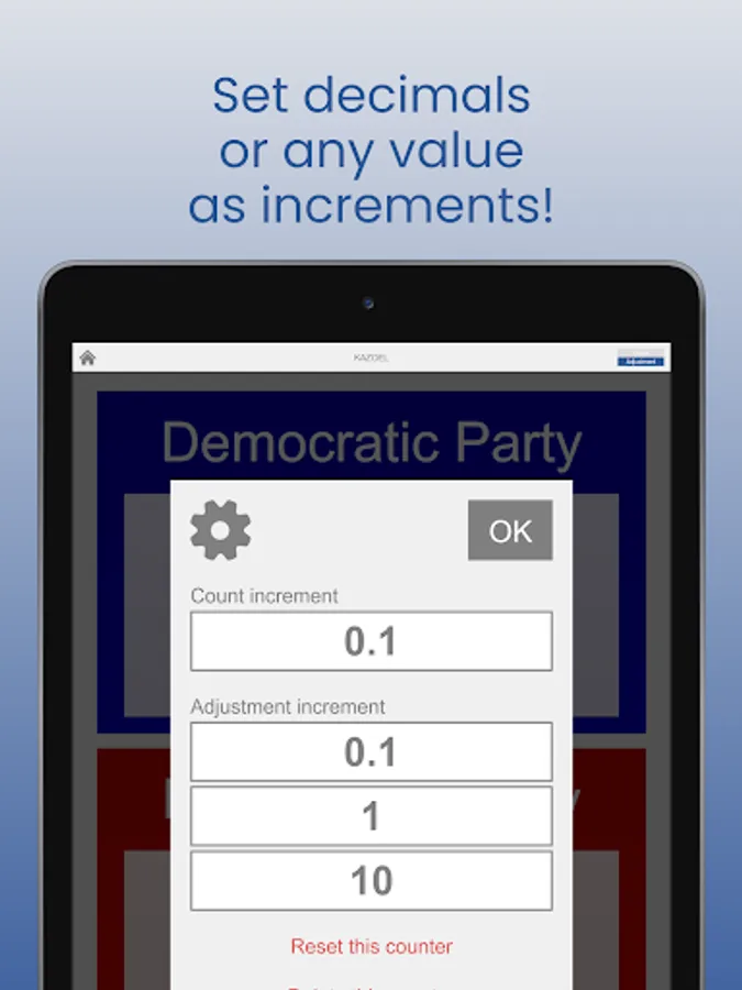 - Unlimited counters and unlimited items in a counter
