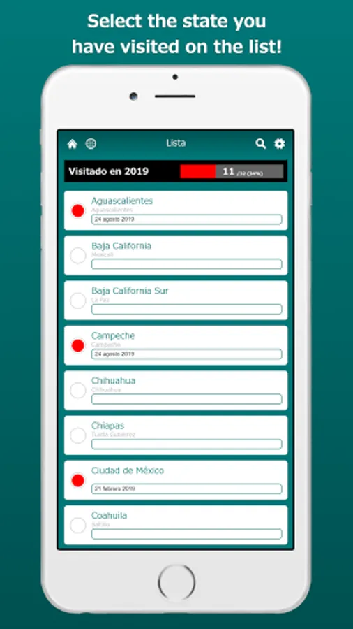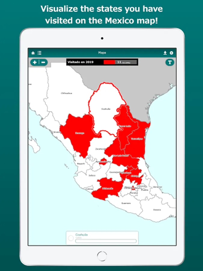 This app shows the states you have visited on the Mexico map! By displaying the labels, you can easily locate states on the map. The map can be zoomed in and out.