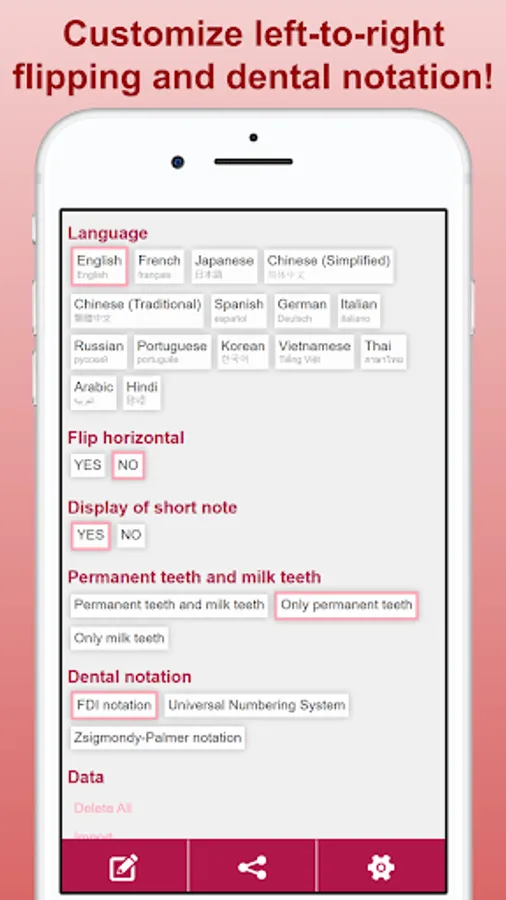 You can customize whether to flip horizontally and the dental notation method (FDI notation, Universal Numbering System, or Zsigmondy-Palmer notation) that indicates the location of the teeth.