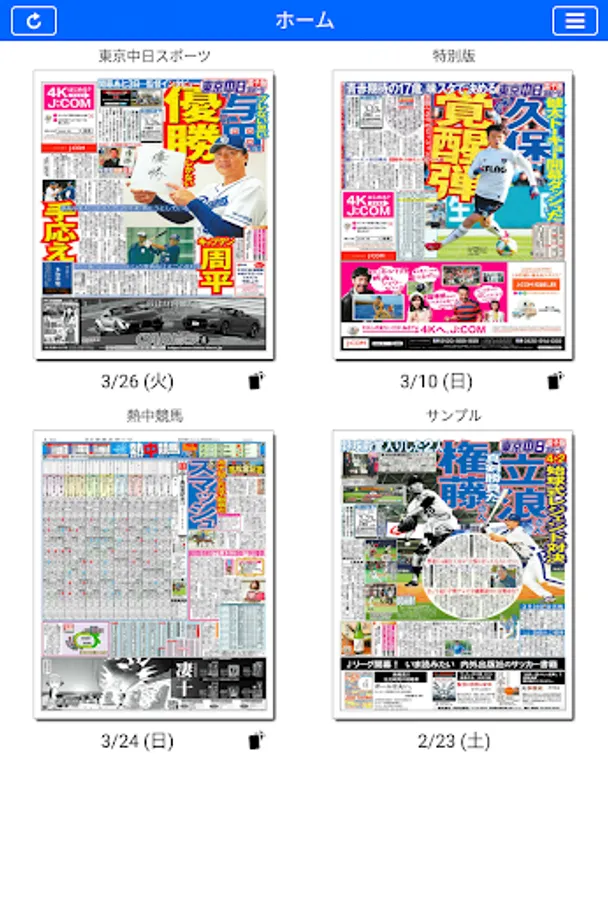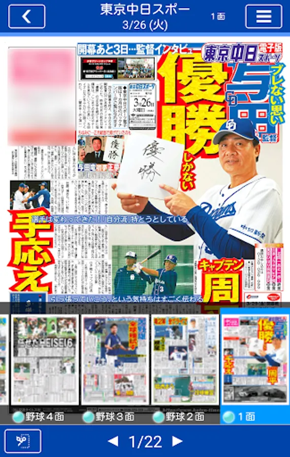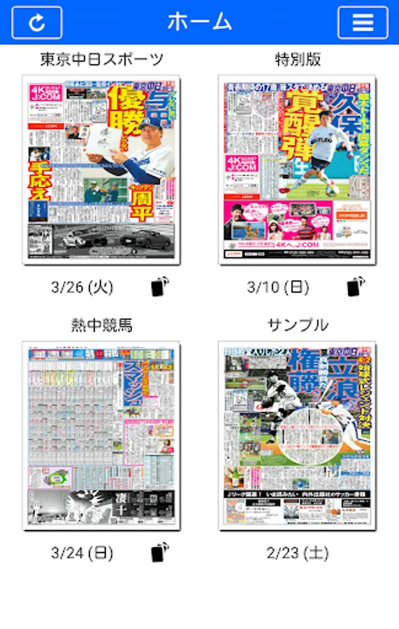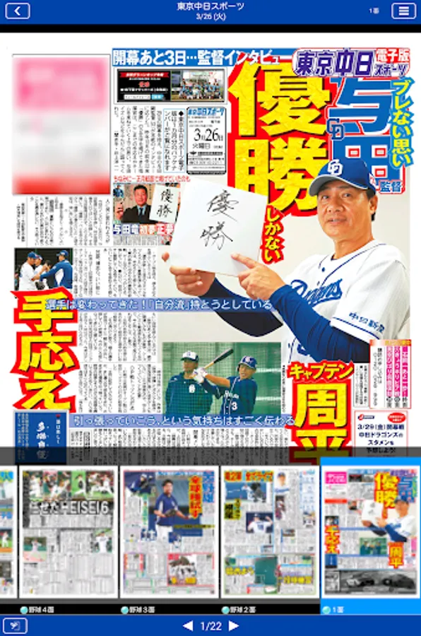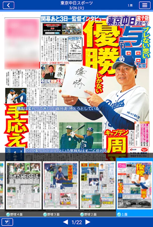 Anytime, anywhere Tochu! "Tokyo Chunichi Sports Electronic Edition" is a must-have app for Dragons fans. The final version of home delivery and "hot race" can be read on smartphones and tablet terminals, and in addition to Dragons information of daily detailed reports, put in the pocket of motor sports such as F1, soccer, Olympics, entertainment, etc. in pocket You will be able to carry around.