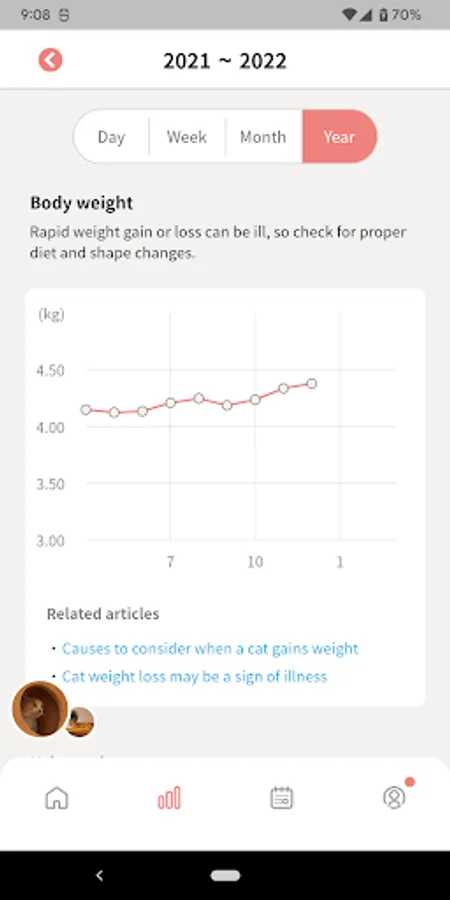 You are able to know your cat’s health condition with the data, it helps your cat to have healthier and happier life.