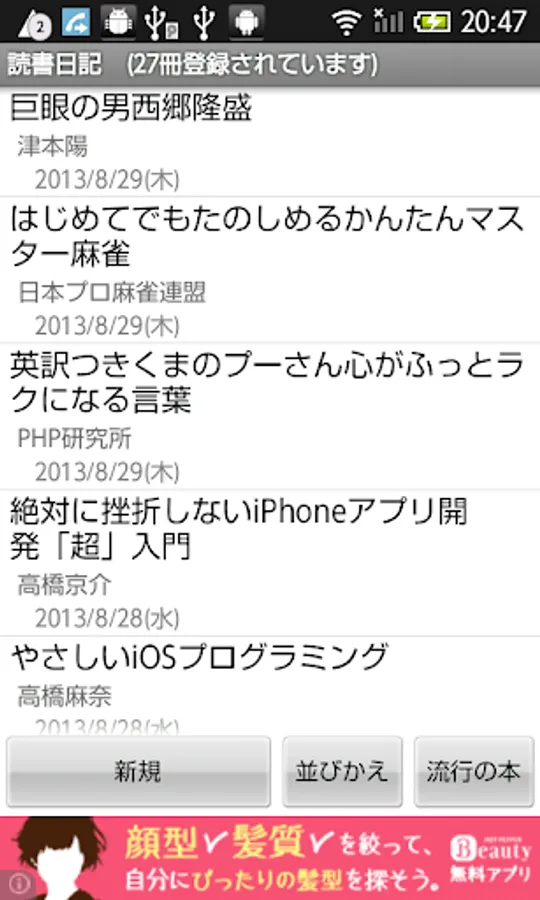 • This search function, and we have been offered use external interface of the National Diet Library search ("http://iss.ndl.go.jp/information/api/"). You can use it only to create the reading and recording of personal collection management.