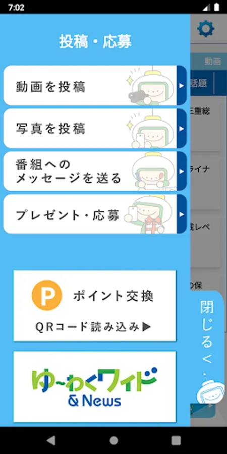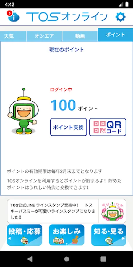 You can apply for campaigns and exchange for TOS goods with the points you have accumulated using the app. You can earn points by scanning the QR code introduced in the program such as "Yu-Waku Wide".