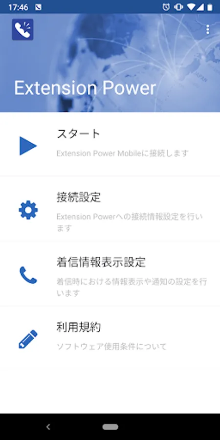Extension Power for Android is the app for integrating smartphone and office CTI and making advanced use of telephone environment.