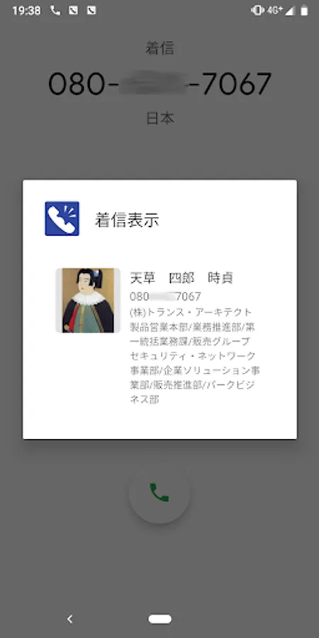 The incoming caller ID display function doesn't refer to the contact of your device.
