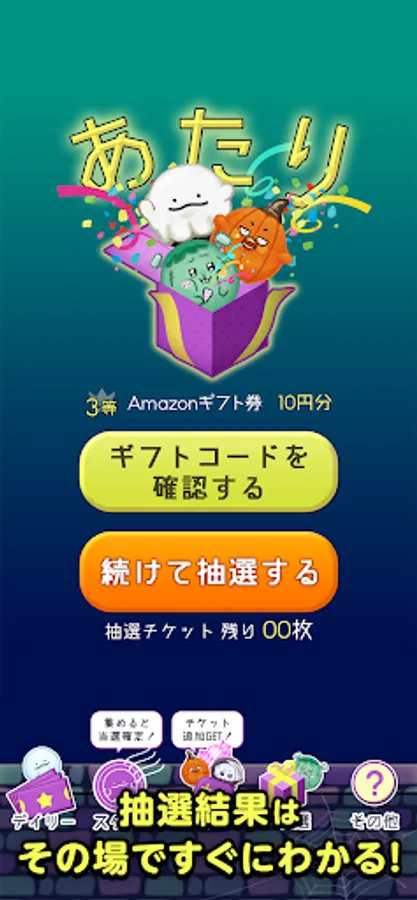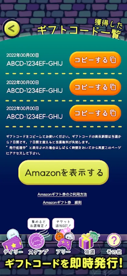 ・ You can see the lottery results on the spot! If you win, the Amazon Gift Code will be displayed, so you can copy it and use it with your Amazon account!