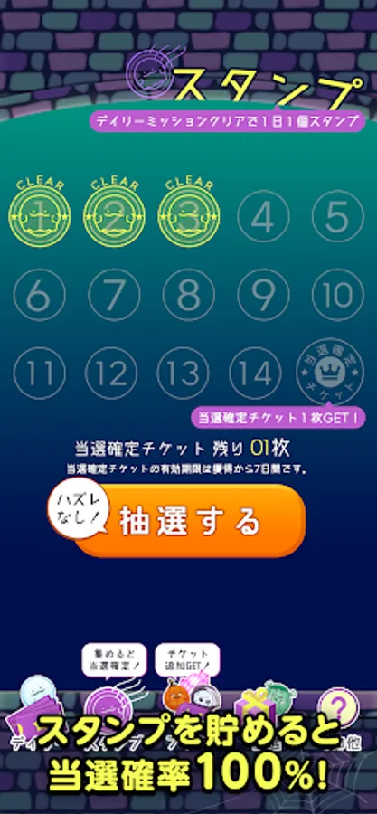 ・ Lottery chances are every day! You can get lottery tickets by clearing daily missions!