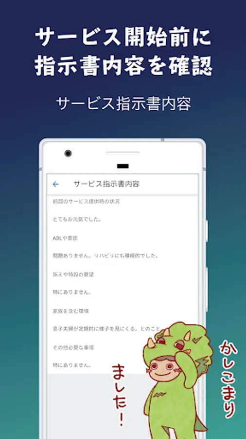 ・ "Tricaretops Nursing Care Support Progress Record" is an application that works with the nursing care software "Tricaretops". This application alone cannot be used.