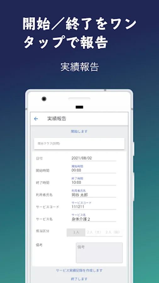It is an application that can report the work results in conjunction with the staff schedule and staff results of the nursing care software "Tricare Tops".