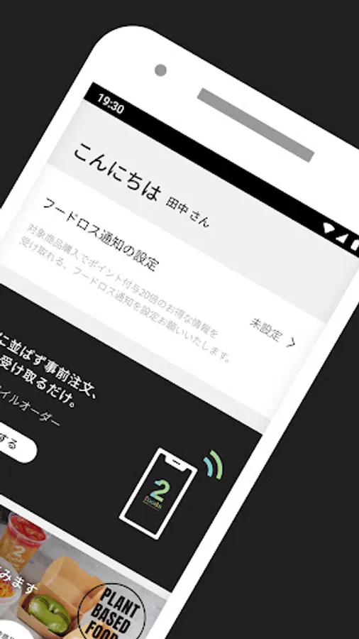 Not only can you complete the process from ordering products to payment with a mobile order with the app, but we also provide various functions that make 2foods more convenient, such as notification of new product information at stores and a list of stores.