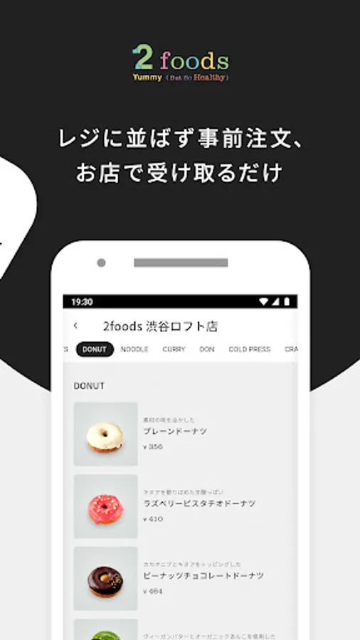 Pre-order without lining up at the cash register with the app. You can pick up 2foods products at the store.