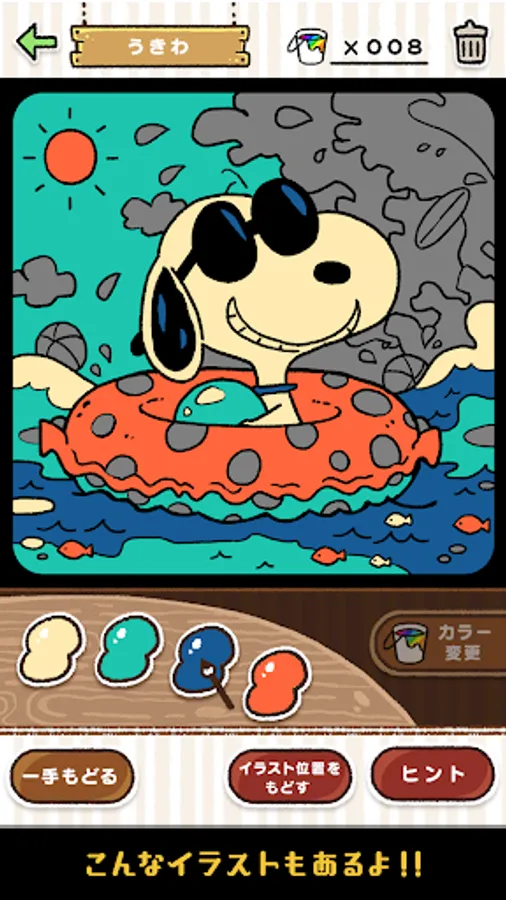 "Snoopy Coloring Puzzle" is a new puzzle game where you paint illustrations with four colors so that the same color is not next to each other.