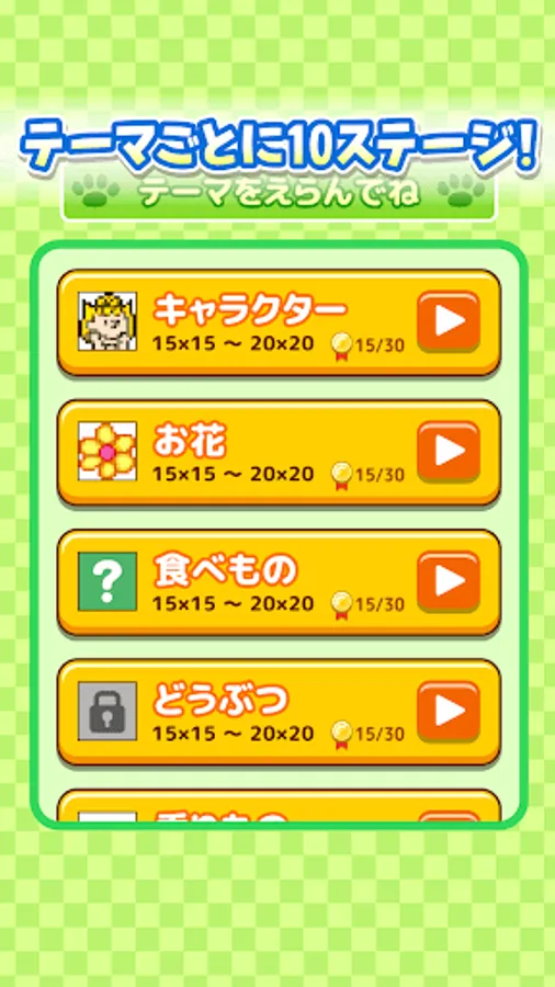 各ステージのマスの大きさに合わせて、最大3種類「イージー」、「ノーマル」、「ハード」があるので、初心者から上級者まで楽しめるよ。