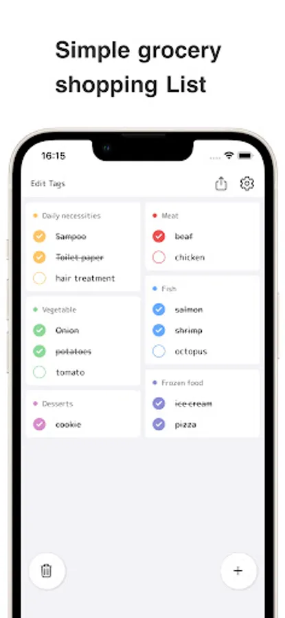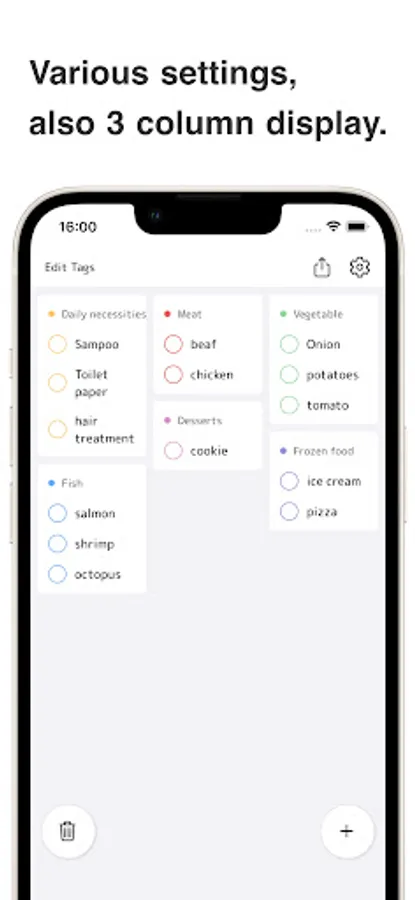 △▼Colorful tags for easy shopping! A shopping list app with 2-column display△▼