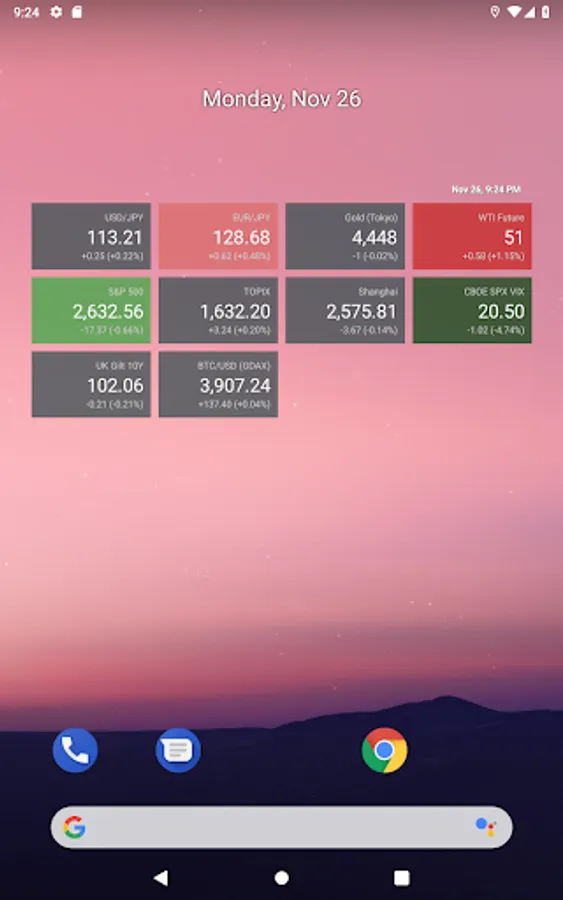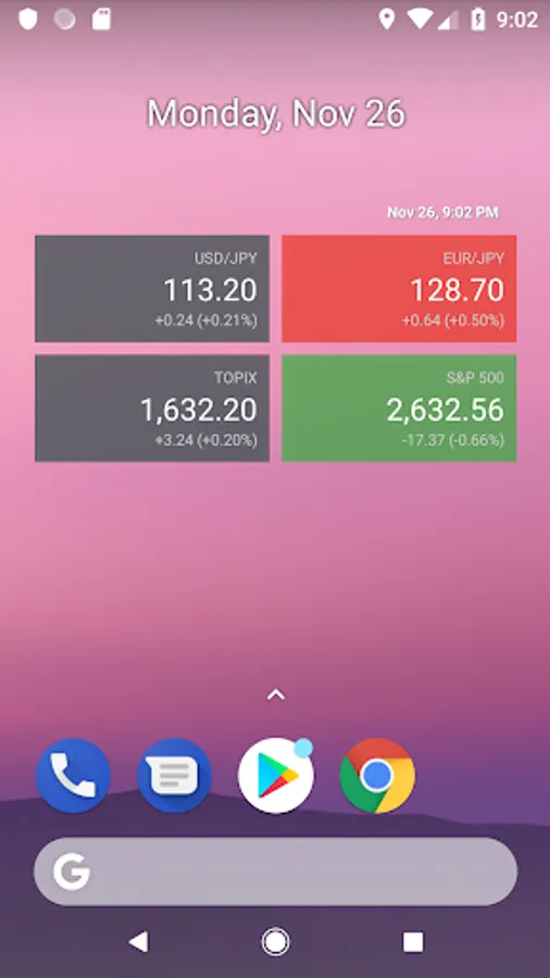 The display data of the widget is automatically acquired through the Internet every 5 minutes.