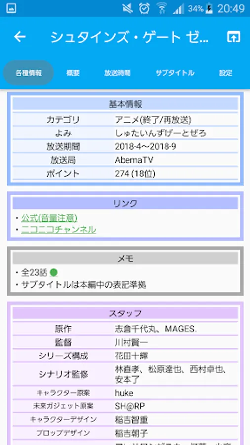 (Official website, staff, cast, OP / ED, subtitle etc)