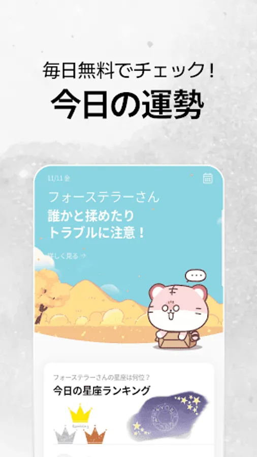 Daily updates of free fortune-telling that interests you, such as love luck, money luck, personality diagnosis, compatibility fortune-telling, monthly fortune-telling for the next month and beyond, weekly and weekend fortune-telling, etc.!