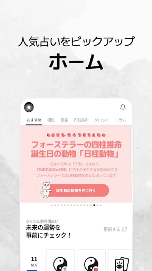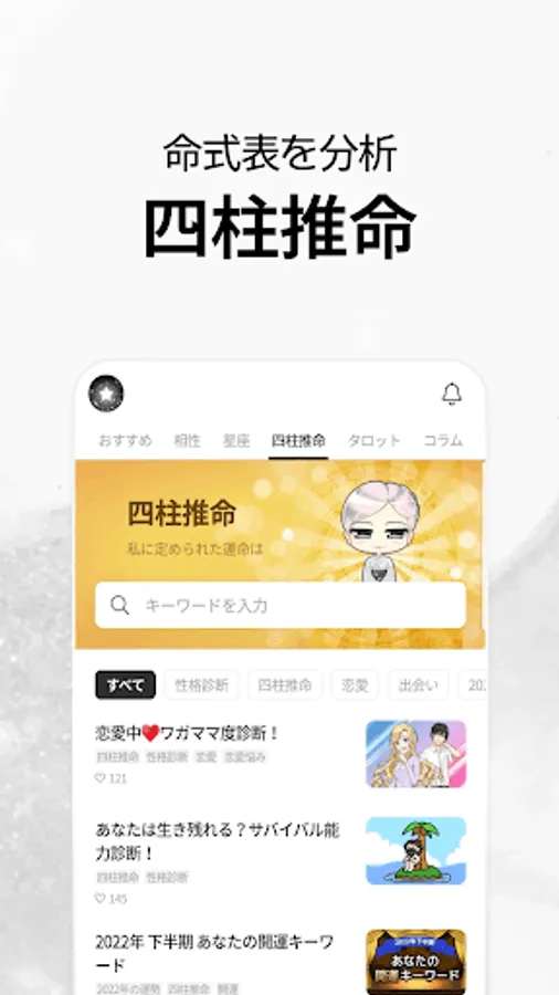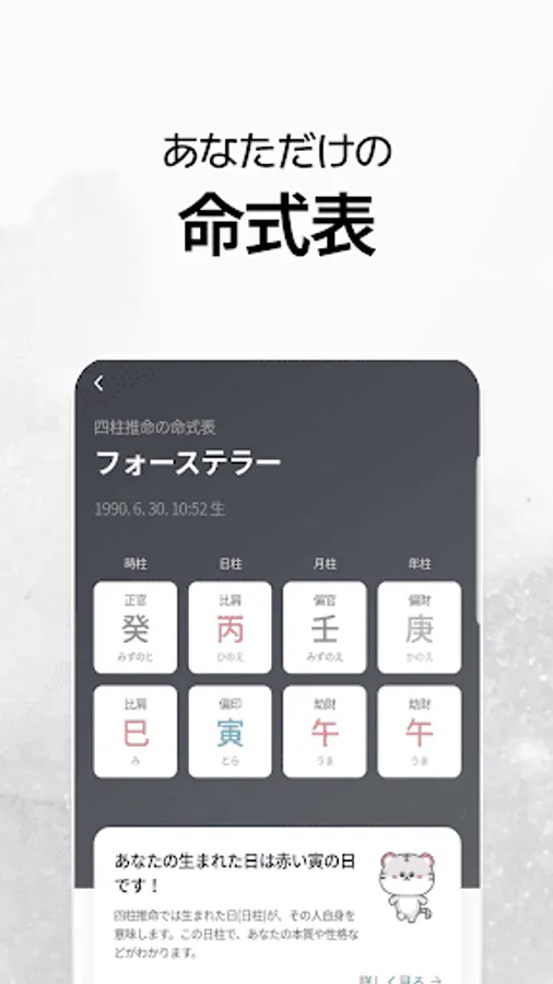 You can predict your monthly love luck, money luck, work luck, study luck, etc. for free with "Sun Pillar Animal Fortune Telling" based on the Four Pillars of Destiny!