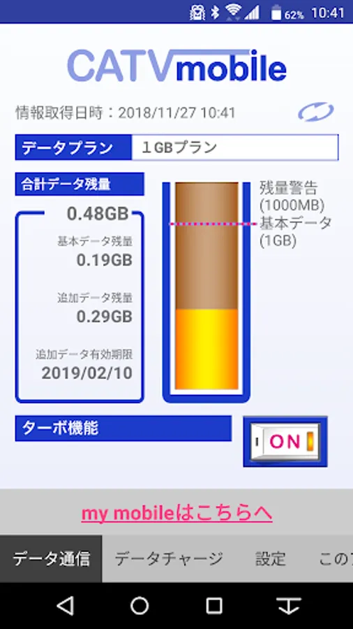You can check the contracted data capacity, etc. from my mobile on the "Data communication" tab.