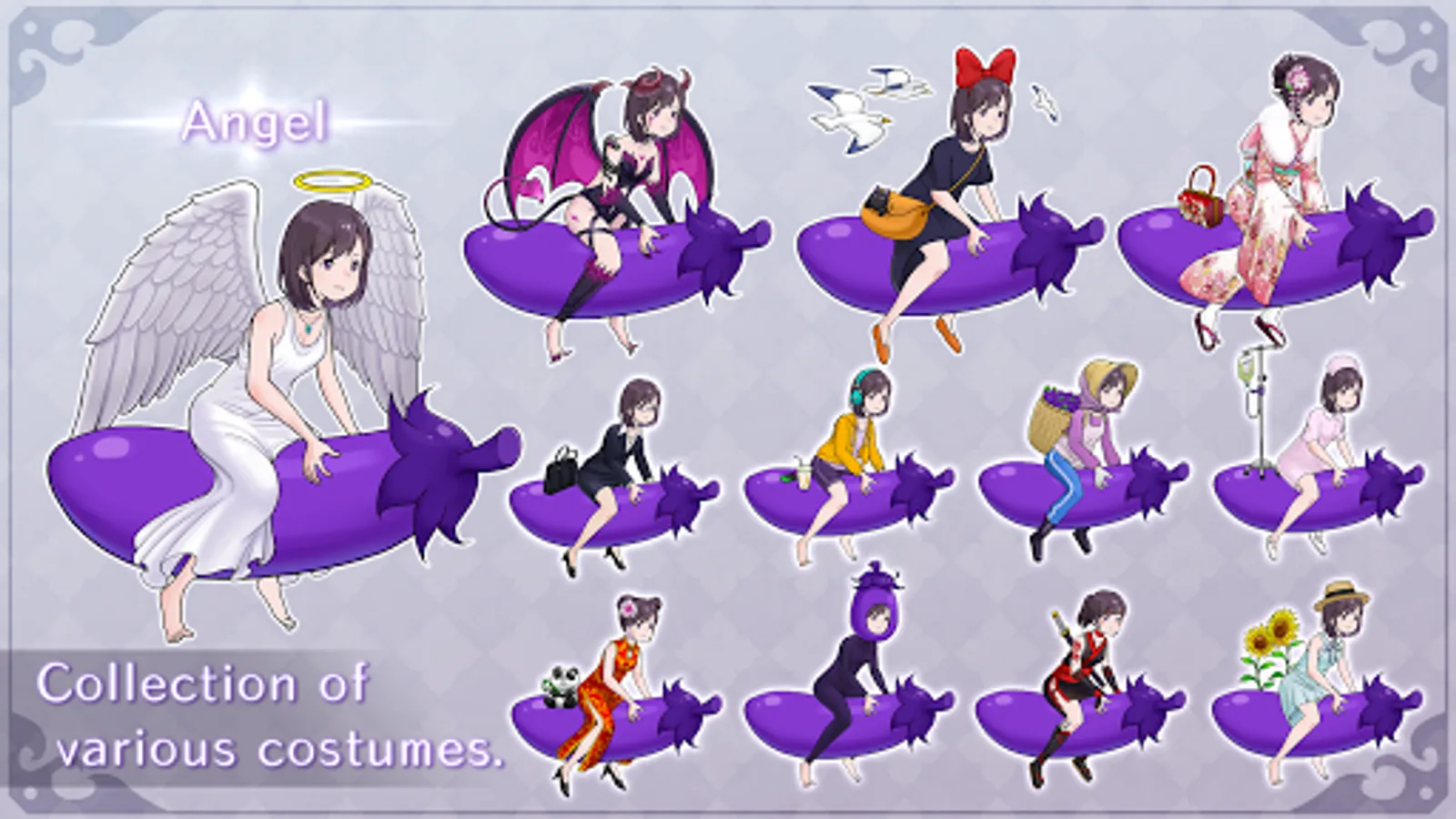 Play as a high schooler who gets the chance to ride a magical eggplant and travel the skies all the way to space!