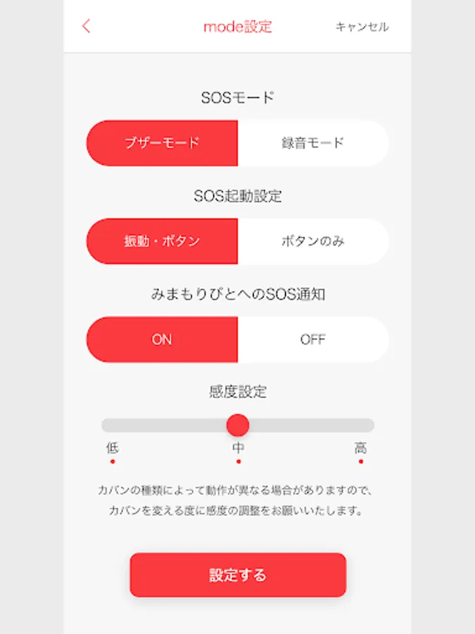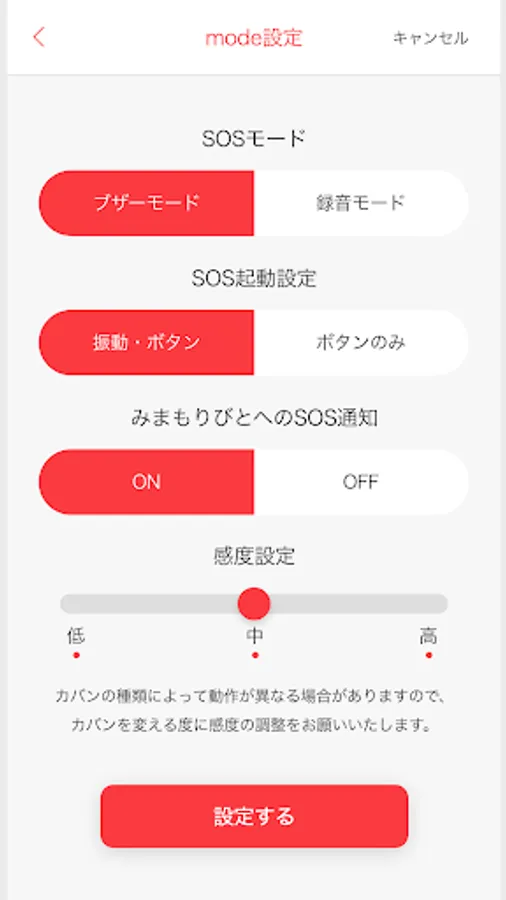 Users can freely select from the mode setting screen, such as switching between the security buzzer mode and automatic recording mode, setting the SOS startup method, and whether or not to notify SOS, so it is possible to customize security goods according to their lifestyle. I can.