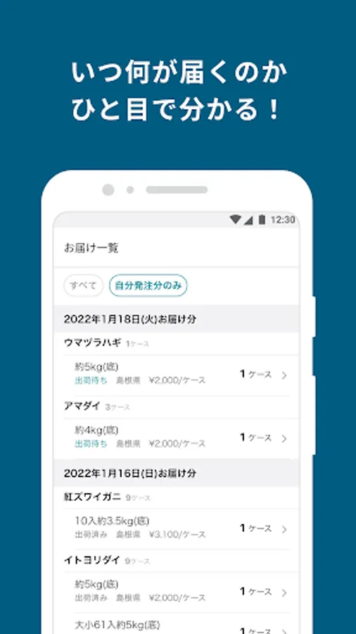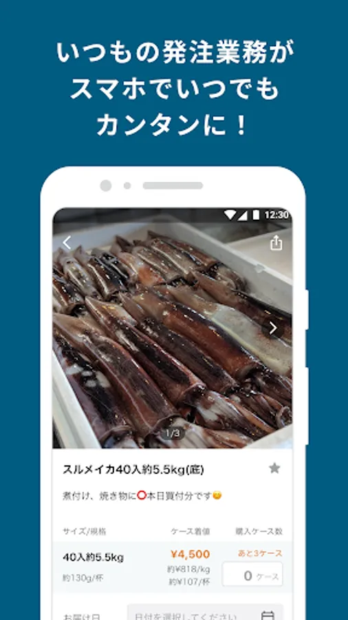 The usual arrival information for fresh fish, processed products, frozen products, etc. and ordering work are completed with a smartphone.