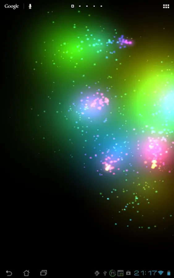 Press and hold on home screen -> "Wallpapers" -> "Live Wallpapers" -> Select "Mega Particles Wallpaper"