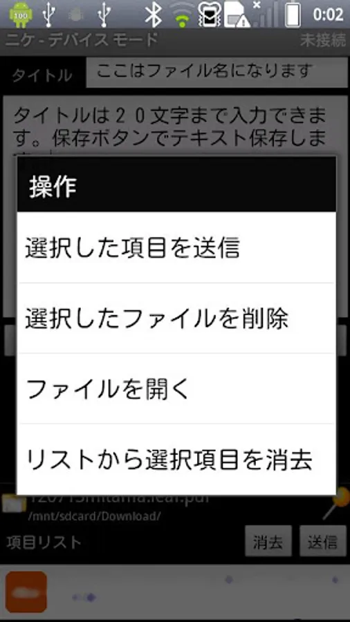 ExtIOMethod is the tool that can make/save text memo, can send/receive the file/text data to another Android device via bluetooth, and also has simple filer functionality.