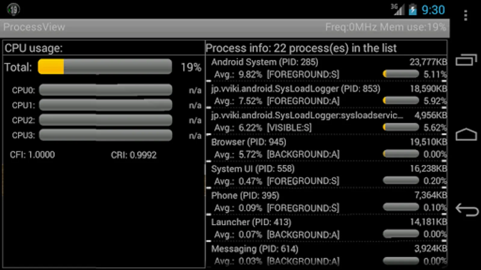 The tool makes you to check the system usage of memory, how many processes are running and how amount of memory is consumed by processes. You can check your Android system, and you can notice that there are some applications are not used by you, I recommend you should uninstall these applications. The instant way of killing processes may resolve your device situation in a short time, but I do not recommend the way.