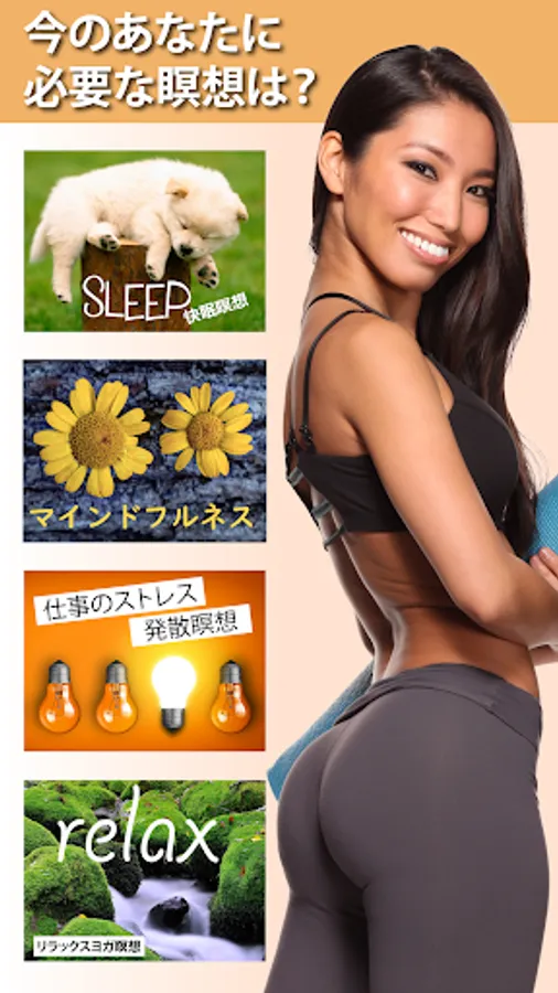 流行りのマインドフルネスを体験したい、想像力を高めたい、色んな呼吸法をやってみたい、不眠症に悩んでいる、最近イライラして怒りっぽい、自信をつけたい、リラックスしたい、仕事のストレスを何とかしたい、不安や倦怠感など、今のあなたに合った瞑想を一目で見つけられます。リフレッシュ効果や、睡眠の質を高める効果も期待できるので、特に問題を抱えていない人にもオススメです!