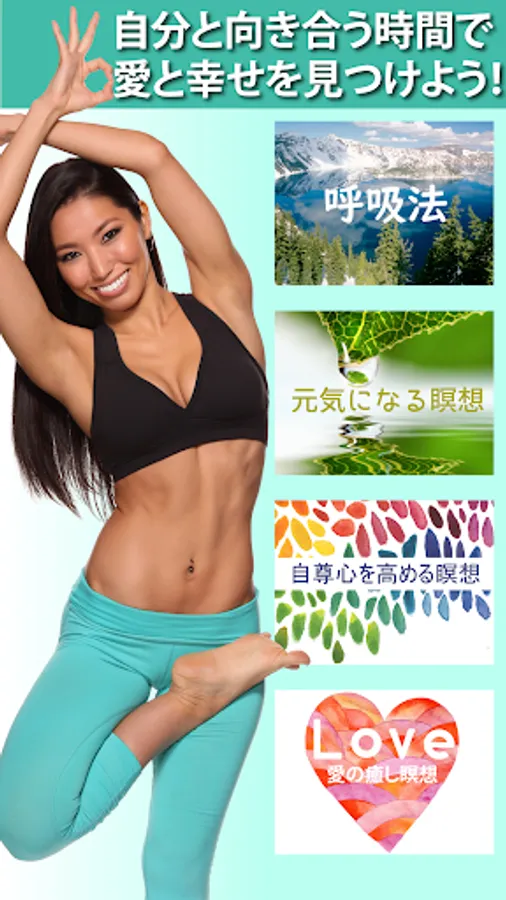 今の気分や、目的に合わせてプログラムを選ぶだけで、究極のリラクゼーションともいわれる「ヨガ瞑想」で肉体的・精神的に癒し、回復させます。楽な姿勢で聞き流すだけだから、ヨガや瞑想初心者でも簡単。ガイドに合わせて呼吸をするだけで、深いヒーリング効果を期待できます。