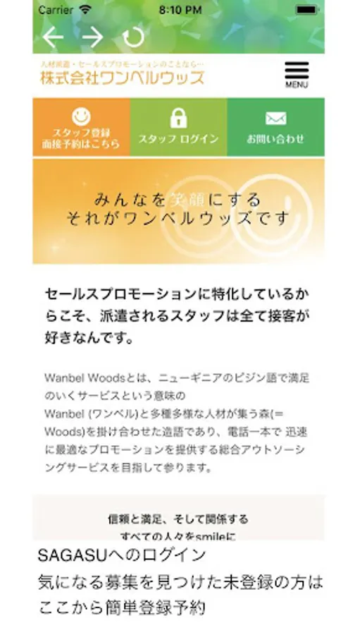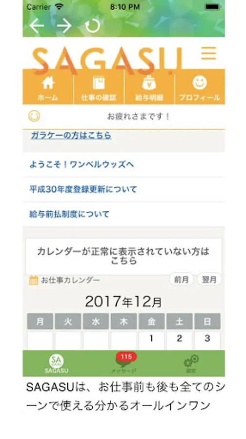 シフト管理、勤怠管理機能などの「SAGASU for staff」は、ワンベルウッズにスタッフ登録されている場合のみご利用頂けるアプリケーションです。