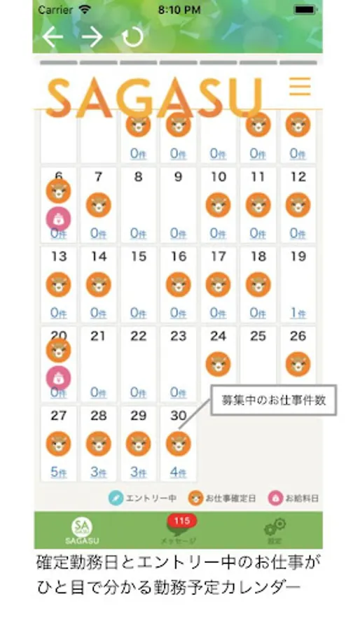 募集中の件数表示されたカレンダーを見ながら、こだわり条件から、呼びこ(配信)メールから登録者の条件に合ったお仕事検索する事が可能です。アクセスや所要時間の確認などそのお仕事に即した乗換検索も可能。