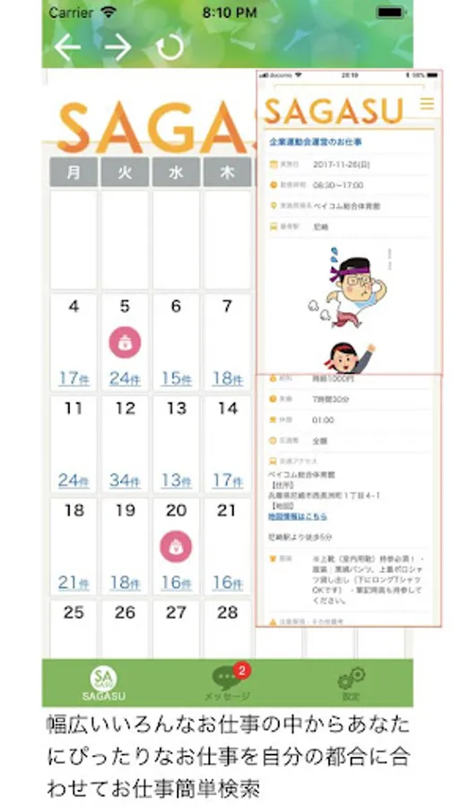 各種イベントやセールスプロモーション、デモ販売、クルーズ運営などのお仕事が簡単に見つかる『SAGASU』