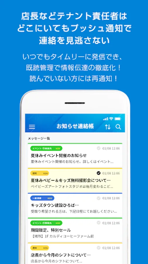 With Yumicom for MALL, you can use disaster mode to list the disaster situation in real time and grasp all stores.