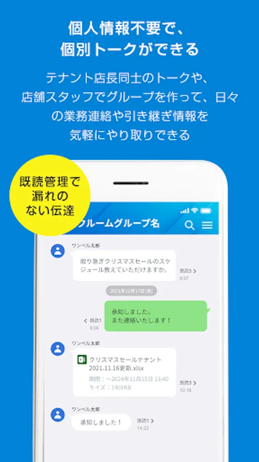 Since information is exchanged using a dedicated business application, important information can be prevented from being viewed or shared after leaving the job.