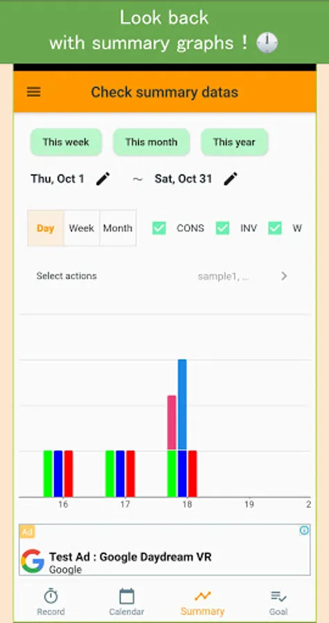 Usage is simple! You can quickly record the time and review it with an easy-to-understand summary graph. By setting and achieving goals, you will realize your own optimal use of time.