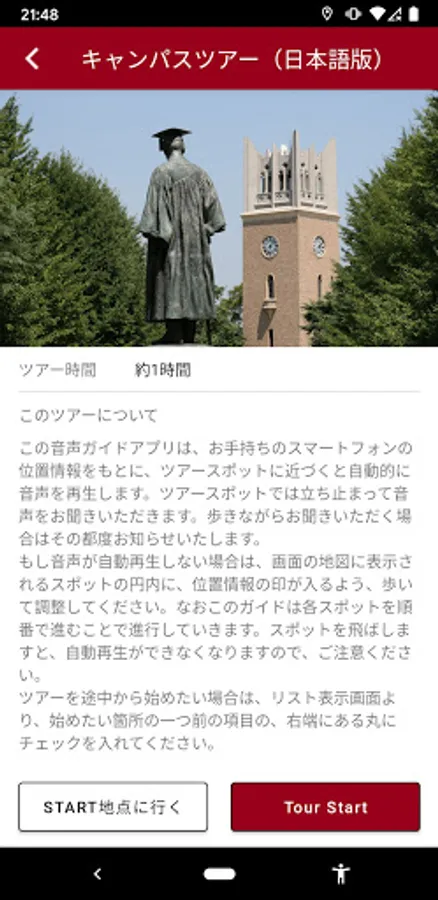“Waseda Campus Tour Audio Guide Application” is an official mobile application by Waseda University.