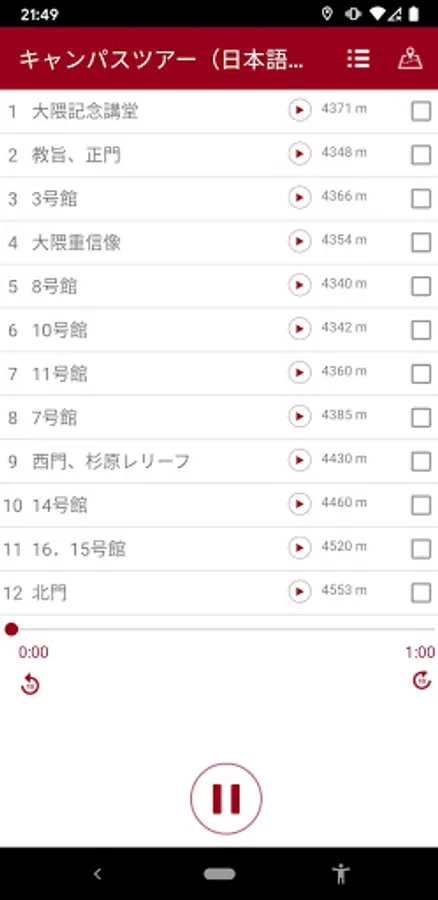 At this time, this application only includes the audio guide for the Waseda Campus. We would very much appreciate it if you would give it a listen to our audio tour during your visit to the campus.
