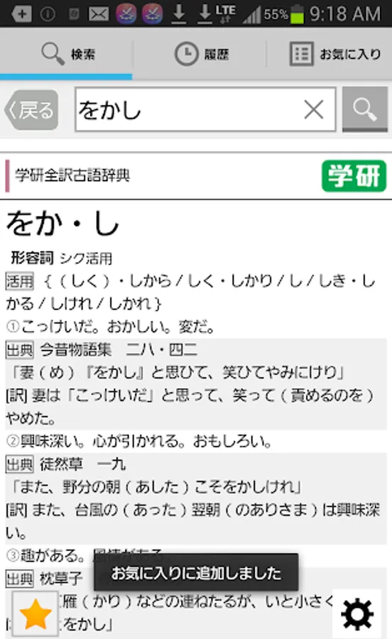 ・ You can look up "source information" and "modern translation" of examples of ancient texts.