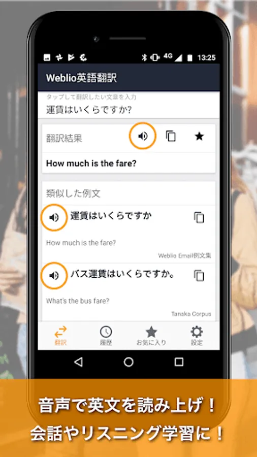 · If the translation result is in Japanese, you can reproduce the translation result by voice.