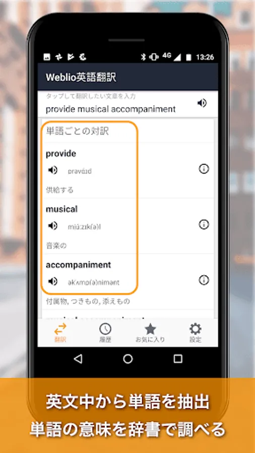 · Extract words from Japanese sentences included in Japanese translation results and display the meaning of each Japanese word.