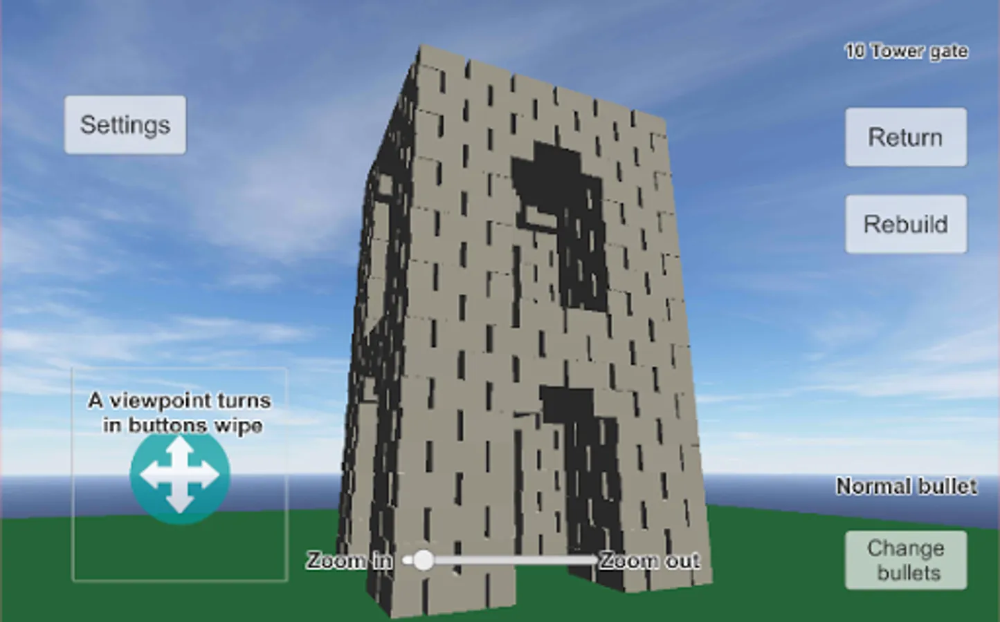 Hit a ball and destroy a cylindrical building and the building only for pillars which piled up a block.