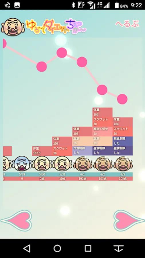 If you tap the old man, the input screen for that day will open, so if you make a mistake, you can correct it.