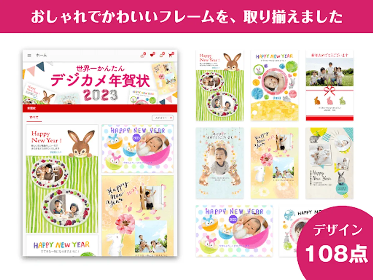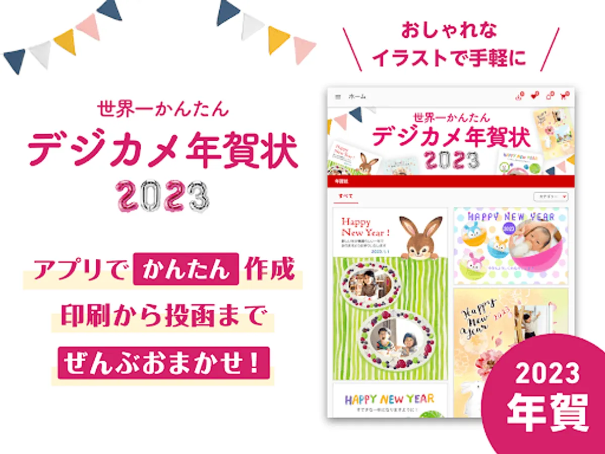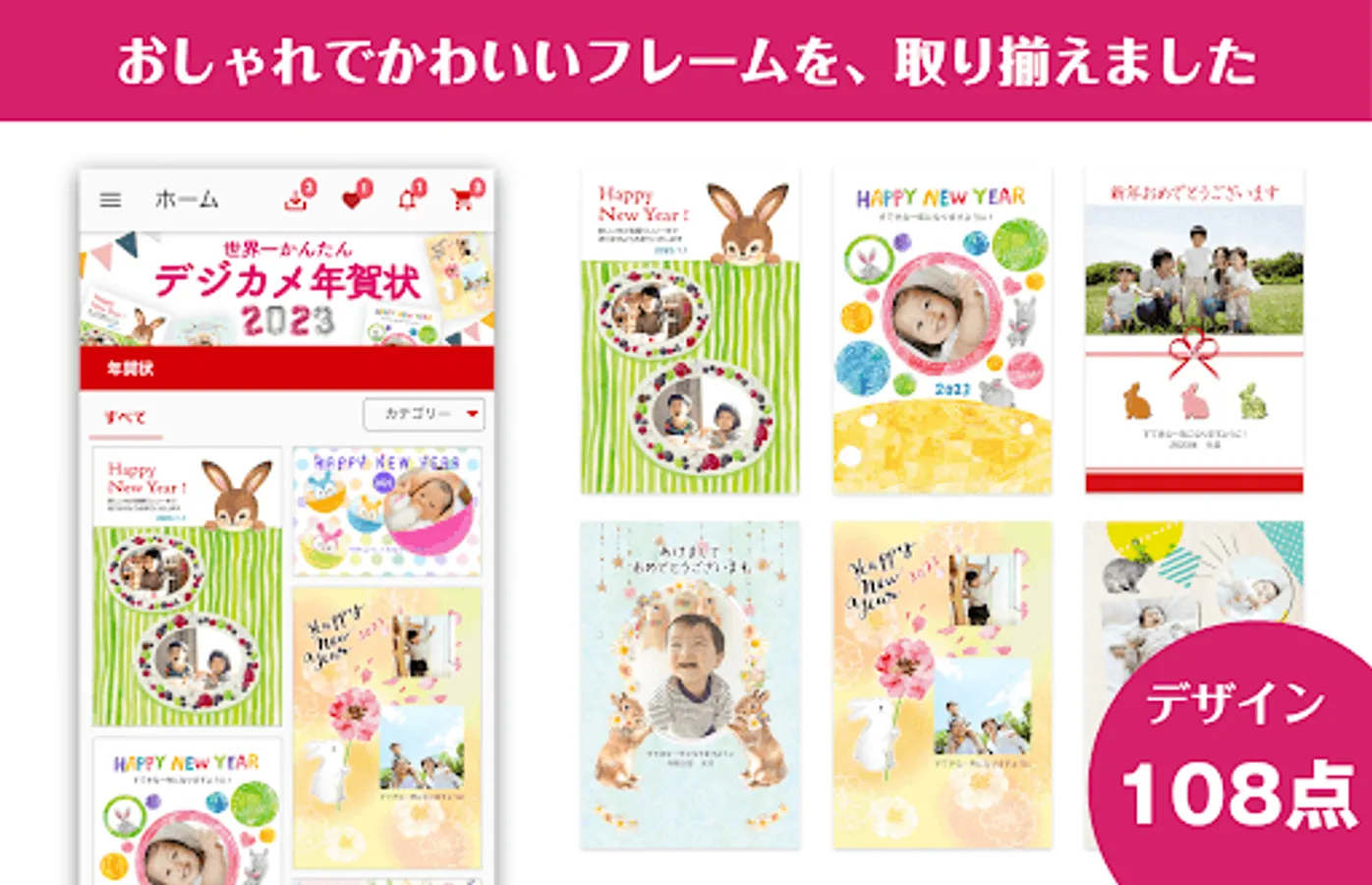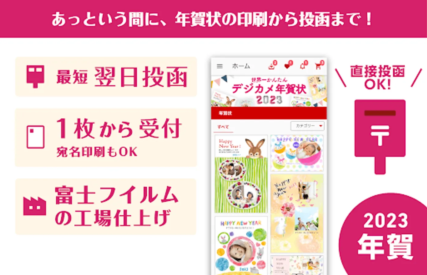 "Complete on your smartphone, make this year's New Year's card" The definitive New Year's card smartphone app that allows you to create, print, and mail New Year's cards!